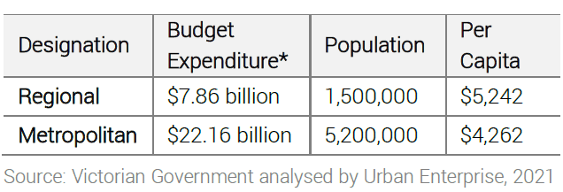 The tables below show the state government budget 2021-22 funding for regional and metropolitan areas. Regional