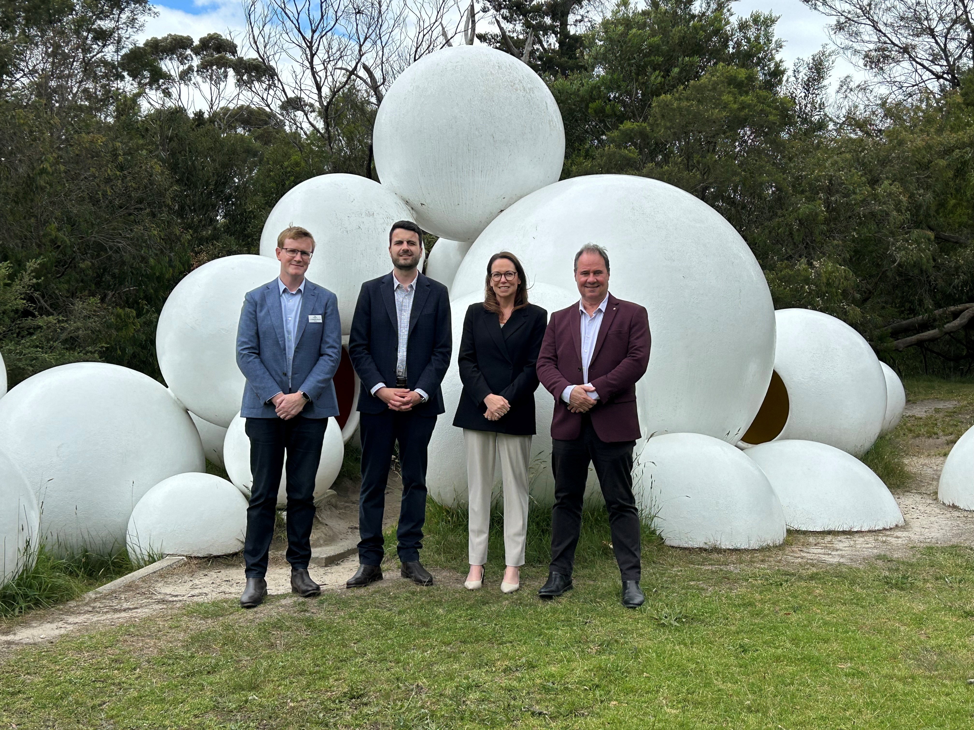 Victorian Treasurer Jaclyn Symes MP with CFMP CEO Josh Sinclair and Paul Mercurio MP