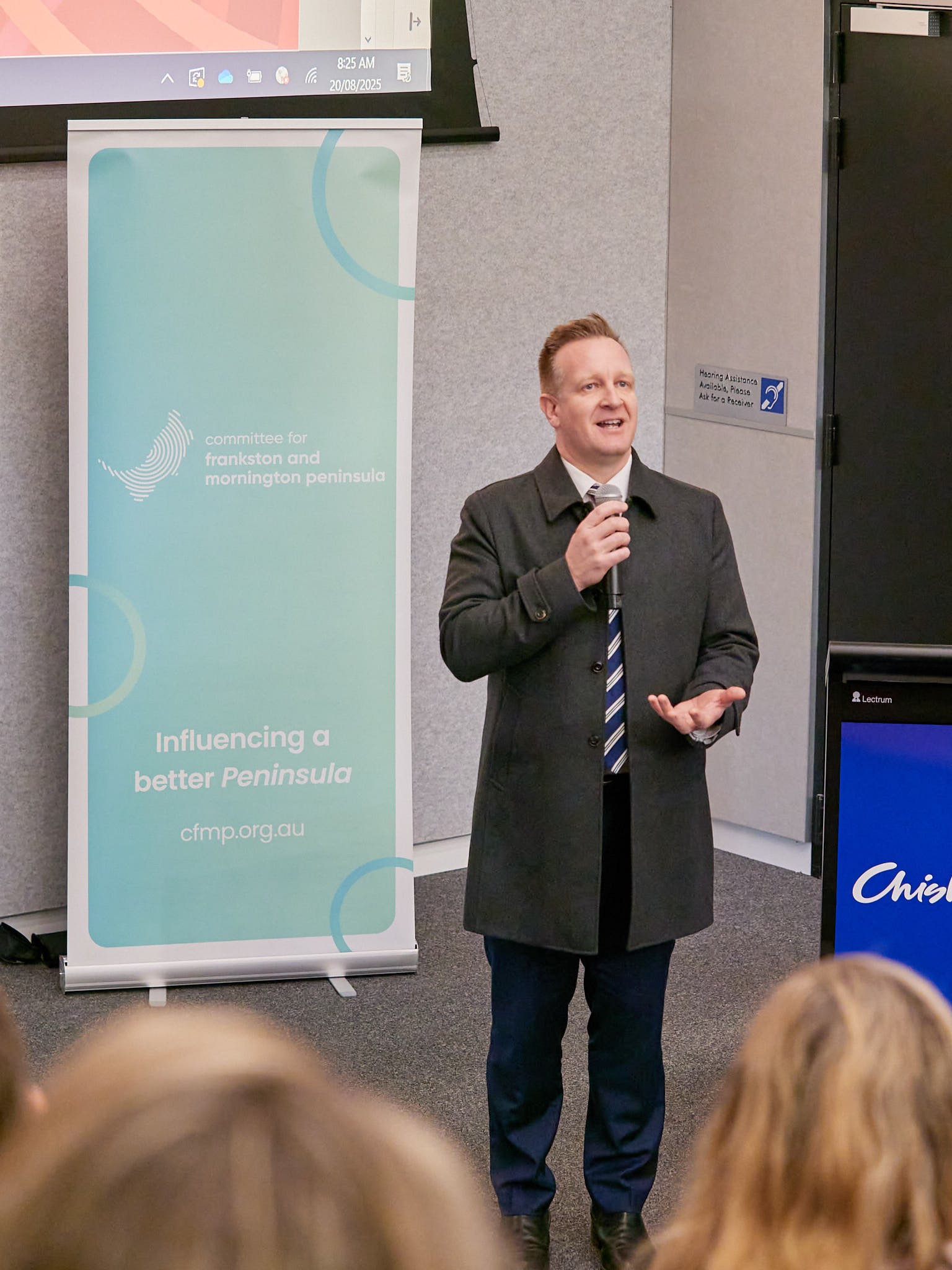 CFMP Members gathered at Chisholm Institute Frankston to hear from Paul Edbrooke MP, Lee-Anne Fisher - the Deputy CEO of Victorian Skills Authority, and Chisholm's Conor Mullan to learn more about the demand for skills and training in our region.