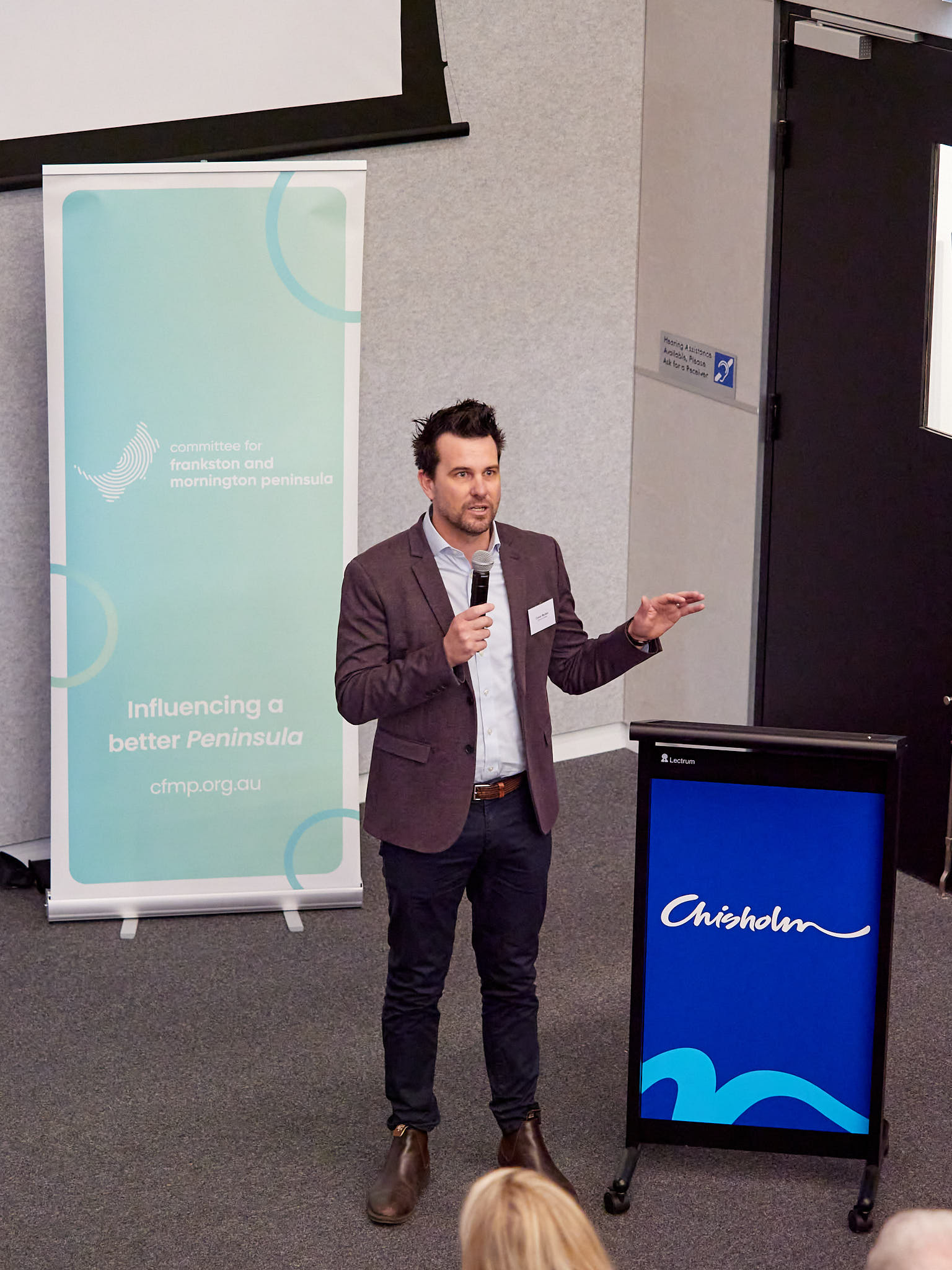 CEO Josh Sinclair, opened the event with some remarks about the current and future demand for skills on the Mornington Peninsula. This includes preparing for what will be required around the potential of the establishment of the Victorian Renewable Energy Terminal (VRET) at Hastings: