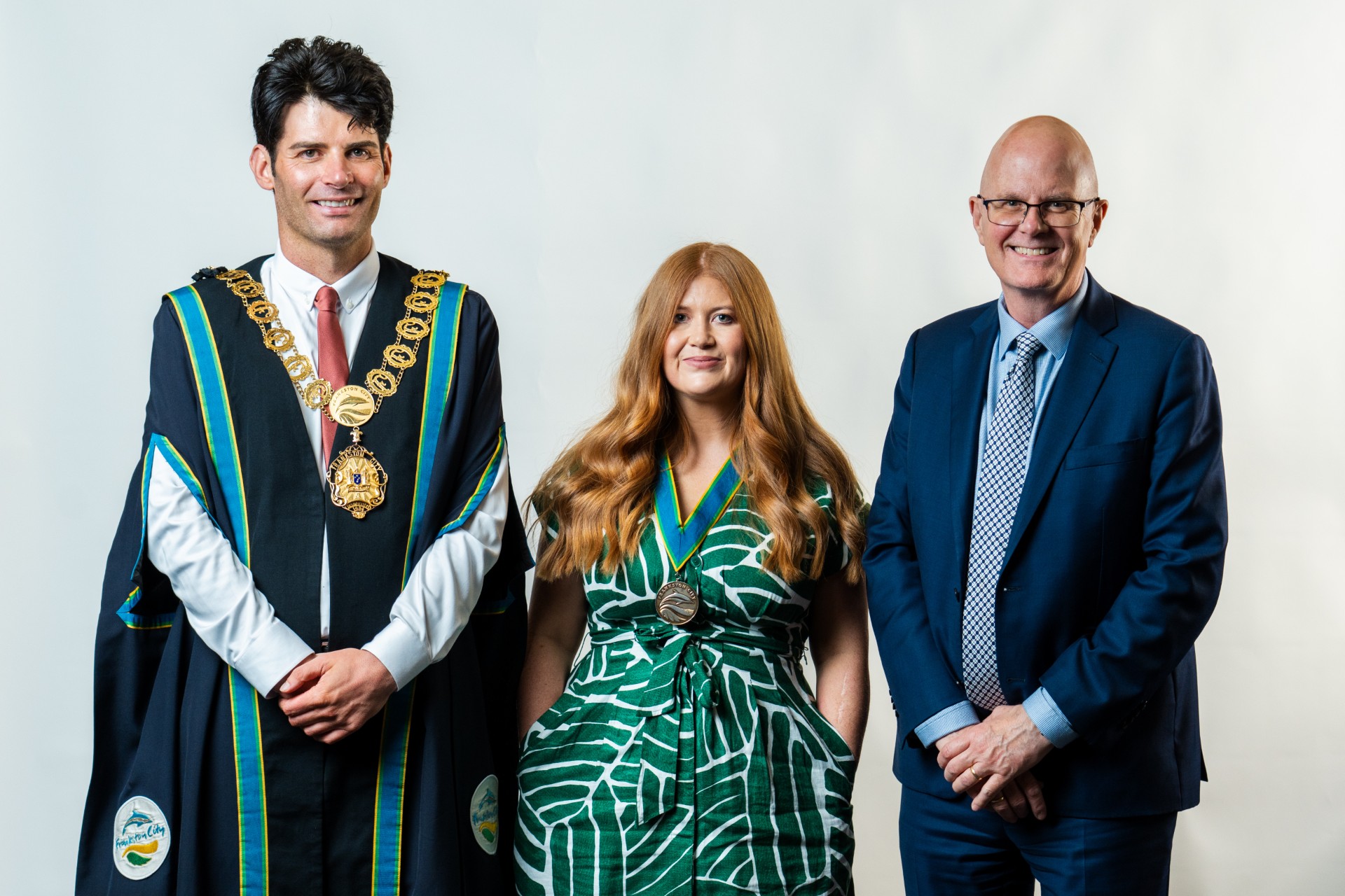 Frankston City Mayor Kris Bolam, Deputy Mayor Steffie Conroy, and CEO Phil Cantillon.